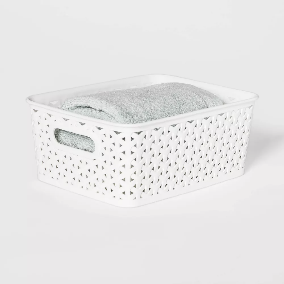 I love these cubes for storing both inside and on top of. They do come in a range of sizes. You can also pick up standard cloth bins that slide right inside. I have four of these in my office. Two I use for storage and to put printers on top of. The other two I use as the base for a desk. I just purchased the top (also from Ikea) and attached it to the two units.